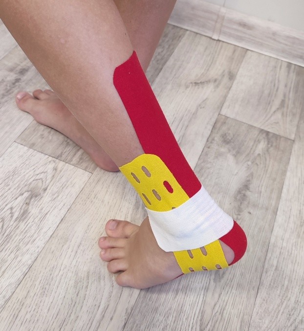 Сегодня на разборе данный шедевр тейпирования. Данная аппликация была вариантом исполнения на задание "Фиксирующая коррекция голеностопного сустава".