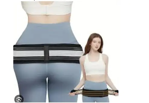 - Если требуется долго сидеть или стоять – надевать пояс или бандаж на подобии такого, как на фото. Здесь главное правильно его надеть. Этот пояс будет удерживать крылья таза от расхождения и снимет нагрузку с мышц спины.
