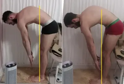 - Мышцы живота со сниженным тонусом, не участвуют в дыхании. Подтверждается нарушенным паттерном наклона. На рисунке показан вариант вашего нарушения – укороченные квадратные мышцы спины. Больше слева.